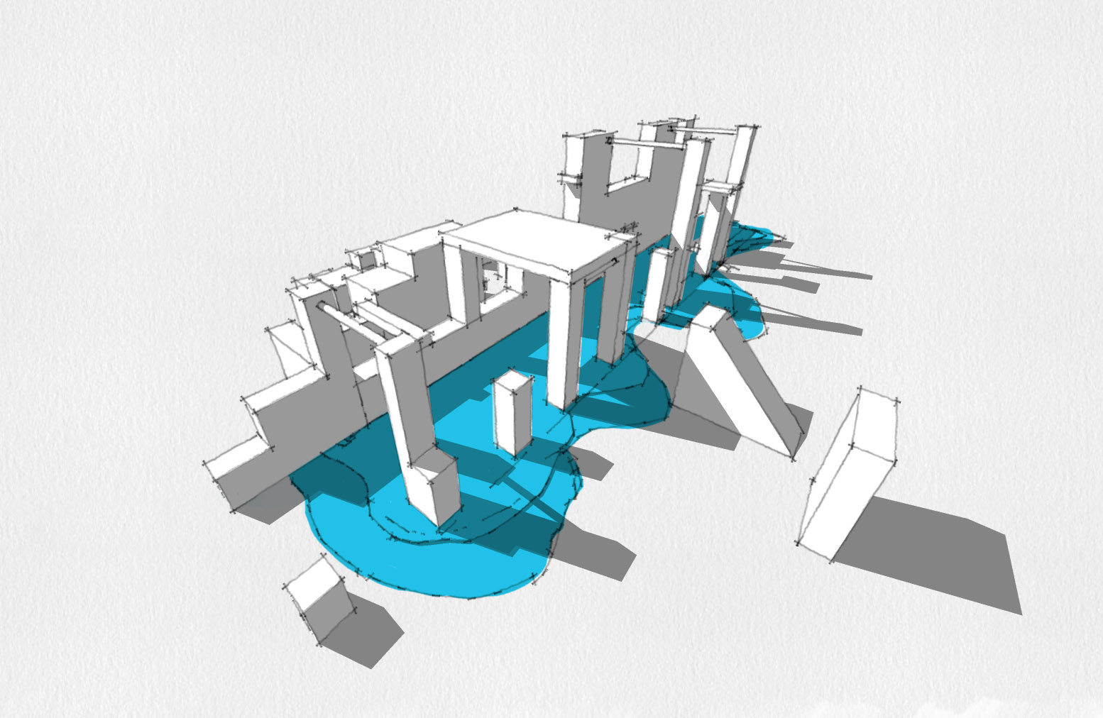 Depending on each project we choose a style of presentation. In this case we created a 3D model as final concept. Working in 3D gives us not only the advantage to quickly make iterations but also to deliver a model that can be translated into construction drawings. Since this project was about approaching the municipality by presenting a concept we decided to make a sketchy looking render.