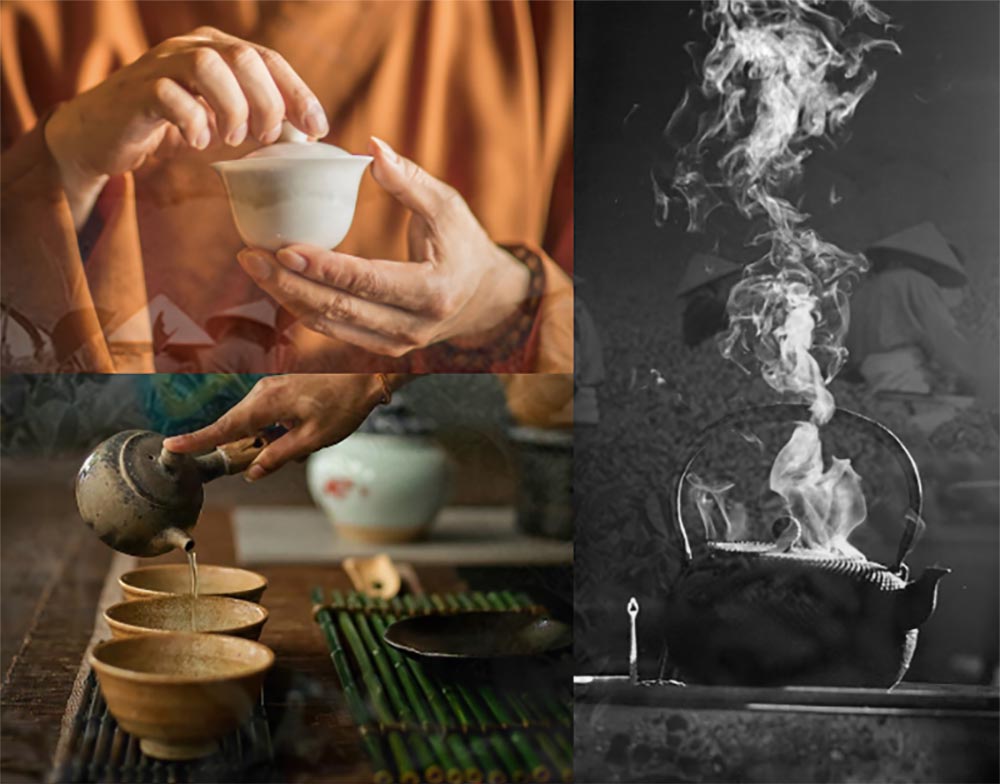 After the sketches I started thinking about the theme of the product. My design goal in terms of user experience was to create an ‘effortless tea moment’ for the morning routine. In doing so the product should allow the user to easily create their own tea blend in a soothing and relaxing way. Therefore I decided to visualize ‘serenity’ and ‘traditional’ in a moodboard to use as a reference.