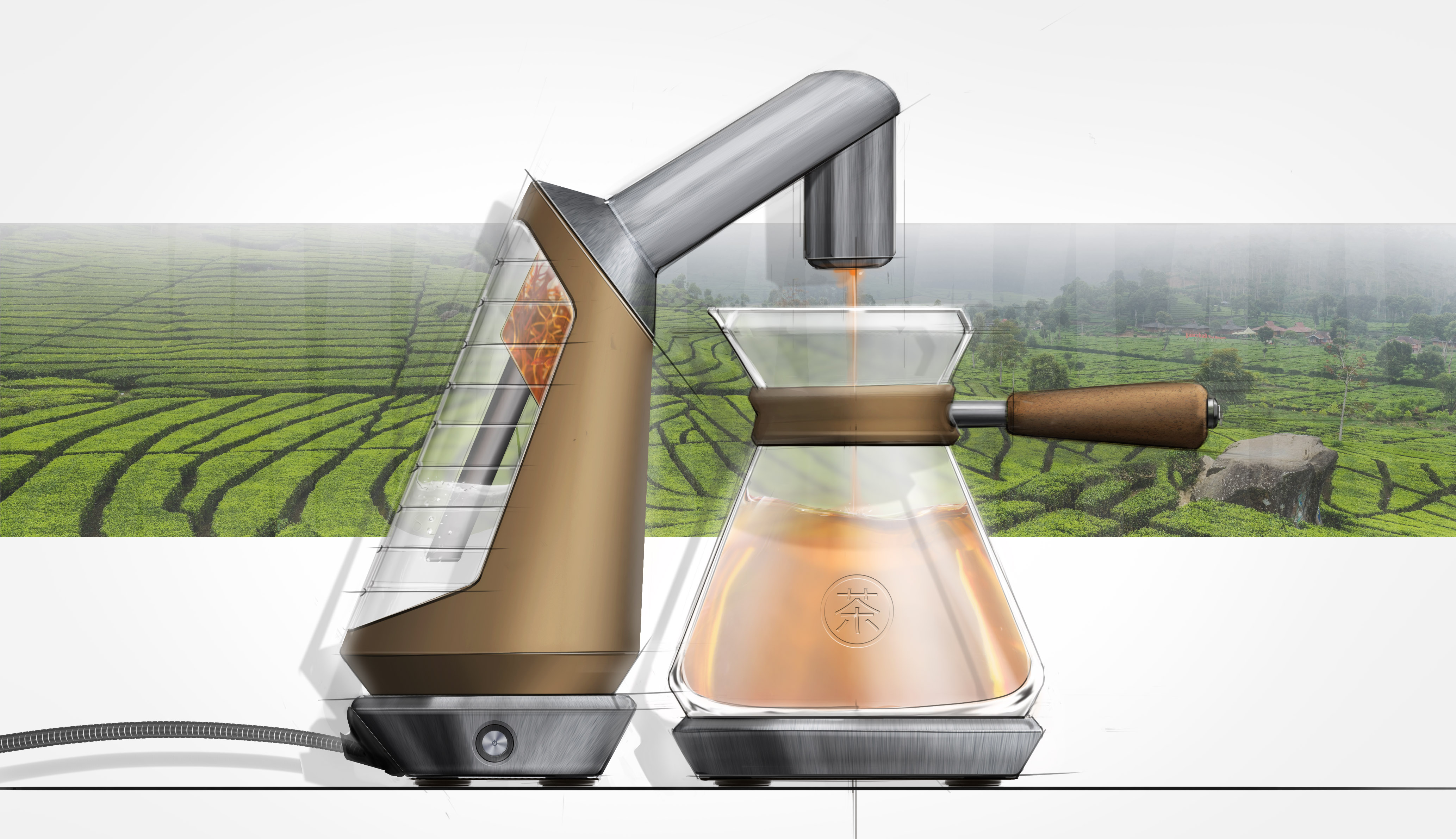 The ‘Miyake’ tea maker is the result from one of the assignments during the course ‘Design Visualization’ at TU Delft. This particular exercise focused on exploring and translating fast paced side sketches into a refined poster presentation using digital means. The aim was to understand and learn to apply the techniques of visual thinking, composition and material appearance.
