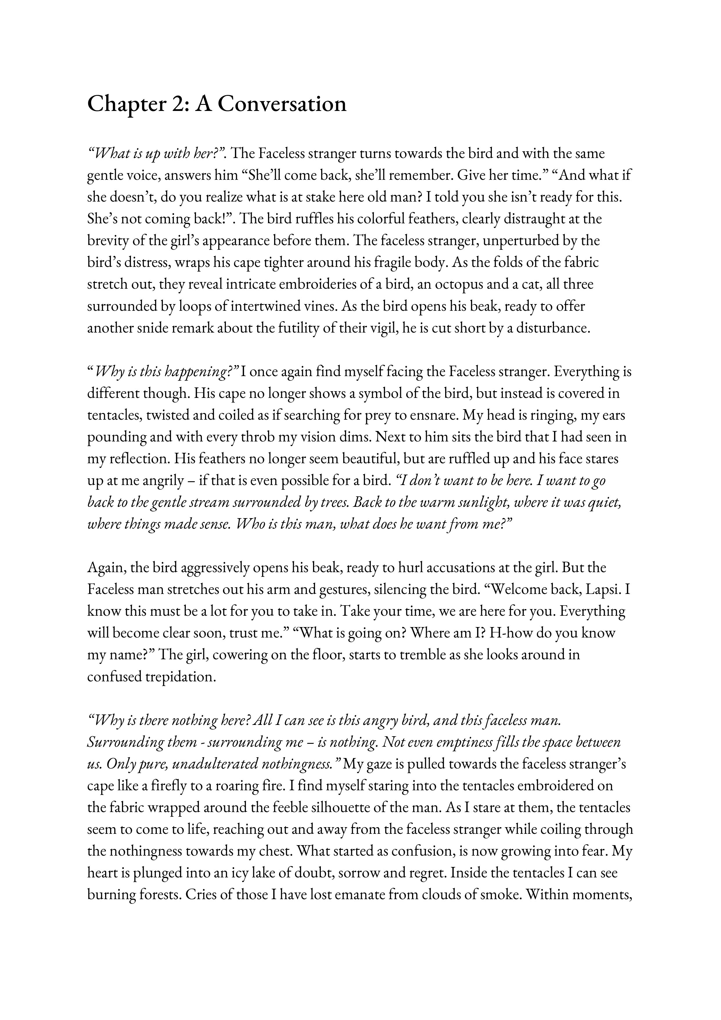 The idea behind this project is to create an ongoing and unfinished collaborative dialogue. Each receiver finds a new ‘stranger’ to send a story based on the story they received. They only include the story that they wrote so that there is no direct influence from the writer before them. I will collect, put all the stories together and share them in a complete story.